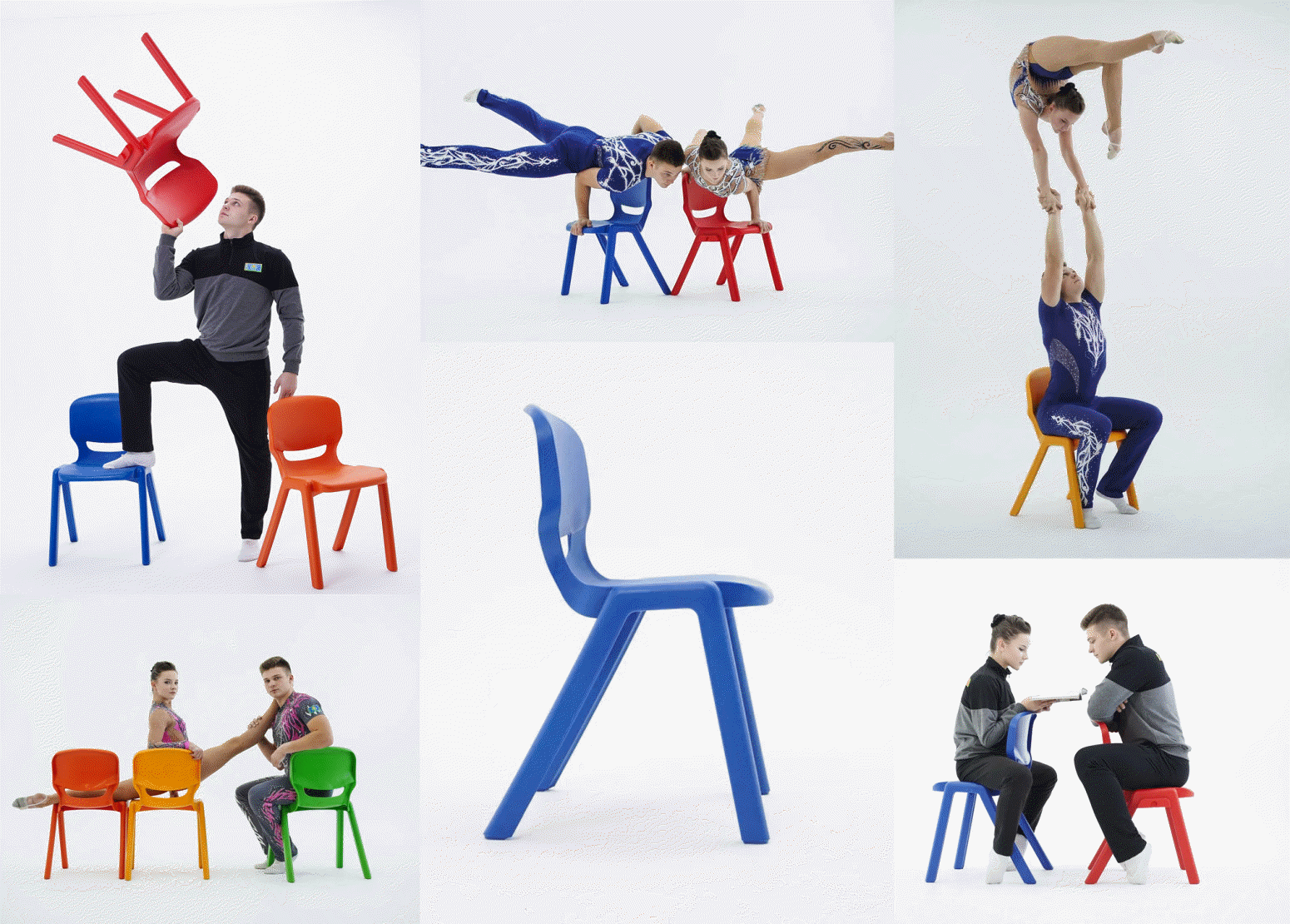 Chairs made entirely of double-walled gas-injected polypropylene. Seven sizes and 16 colours. A sustainable choice, 100% recyclable.